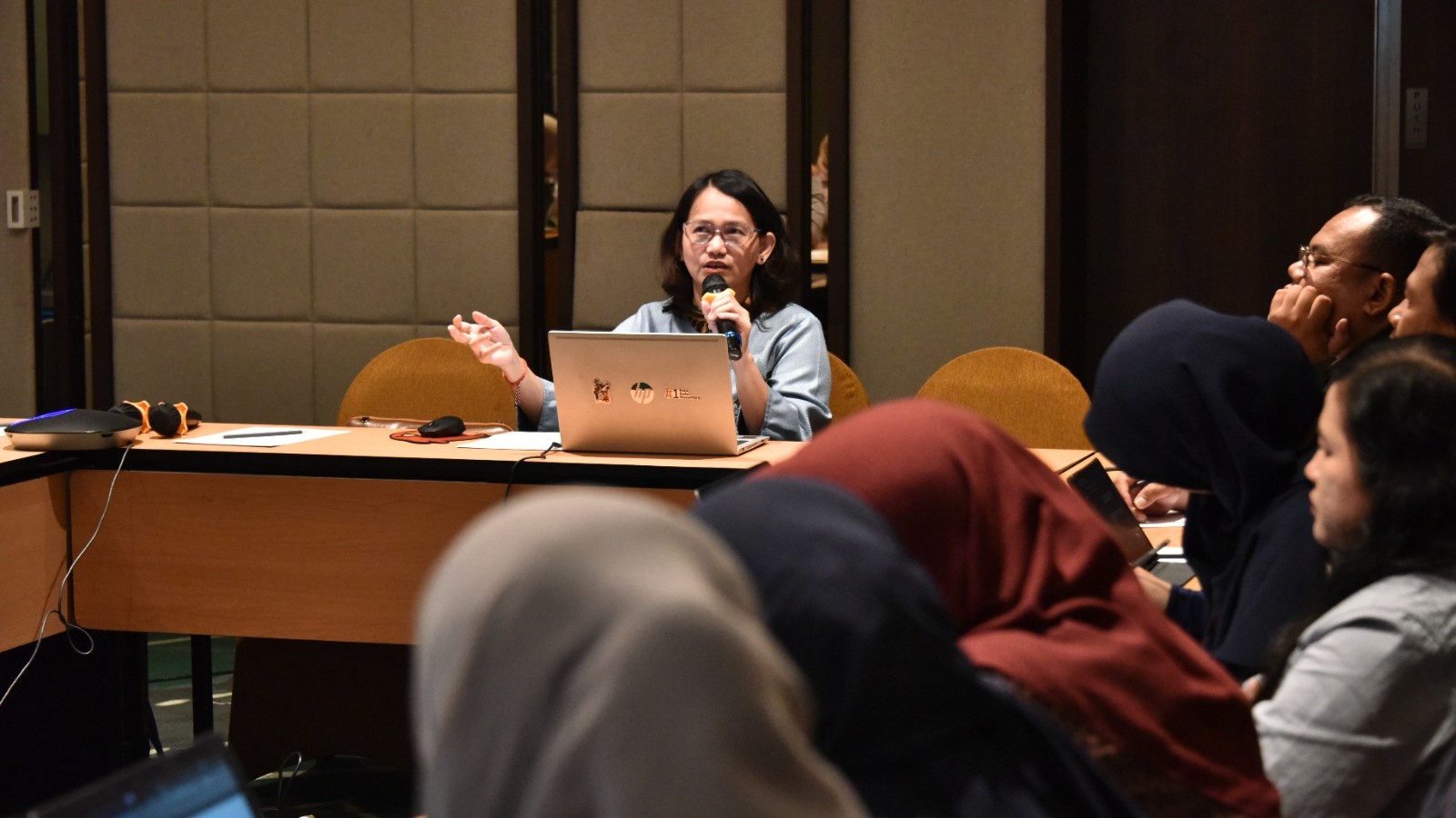 Kepala Biro HHMK BIG Mone Iye Cornelia Marschiavelli saat membuka pembahsan /abdi maulana