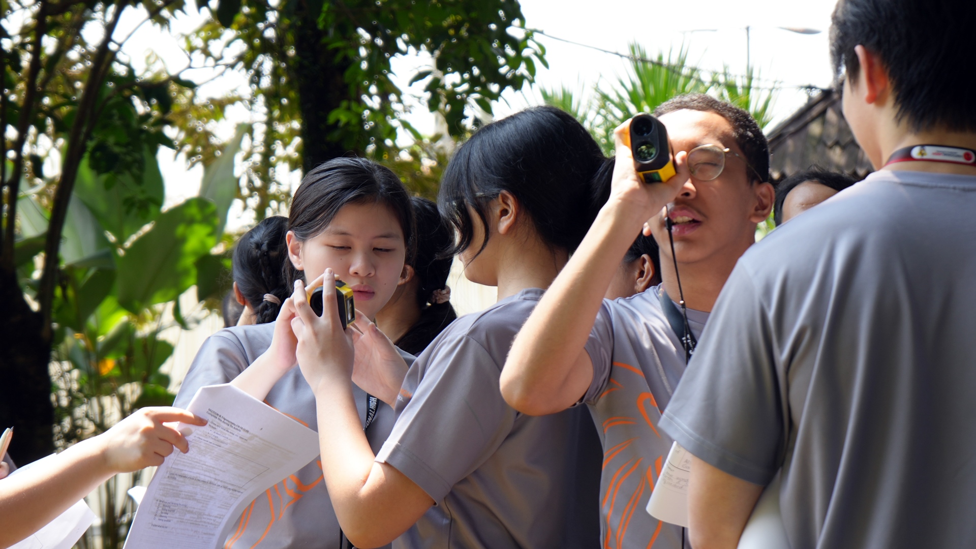 Setelah sesi teori, para siswa mengikuti praktik trigonometri dalam survei dan pemetaan. Mereka belajar menggunakan alat survei serta memahami teknik triangulasi untuk mengukur jarak dan sudut secara langsung.