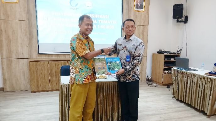 Jakarta, Berita Geospasial – Direktur Pemetaan Tematik Badan Informasi Geospasial (BIG) Gatot Pramono menyerahkan Rekomendasi Kebijakan Penyelenggaraan Informasi Geospasial Tematik (IGT) Lahan Ganja kepada Ketua Satuan Tugas Pemusnahan Lahan Ganja Direktorat Narkotika Badan Narkotika Nasional (BNN) Komisaris Besar (Pol.) Guntur Ario Tedjo.