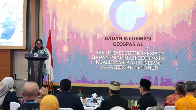 Jakarta, Berita Geospasial – Unit Kearsipan Badan Informasi Geospasial (BIG) mencetak prestasi gemilang dengan meraih nilai akreditasi 96,96 dengan kualifikasi AA (Istimewa). Akreditasi ini berlaku selama enam tahun dan diberikan oleh Arsip Nasional Republik Indonesia (ANRI) setelah melalui proses verifikasi menyeluruh terhadap berbagai aspek penyelenggaraan kearsipan, termasuk kebijakan, pembinaan, pengelolaan arsip, serta sumber daya kearsipan seperti SDM, sarana prasarana, dan organisasi kearsipan.