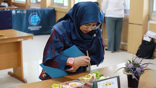 Workshop dan Lomba Menghias Bento menghadirkan narasumber dari Sekolah Tinggi Pariwisata Bogor. Ia pun berbagi wawasan mengenai peluang dan strategi sukses wirausaha bento.