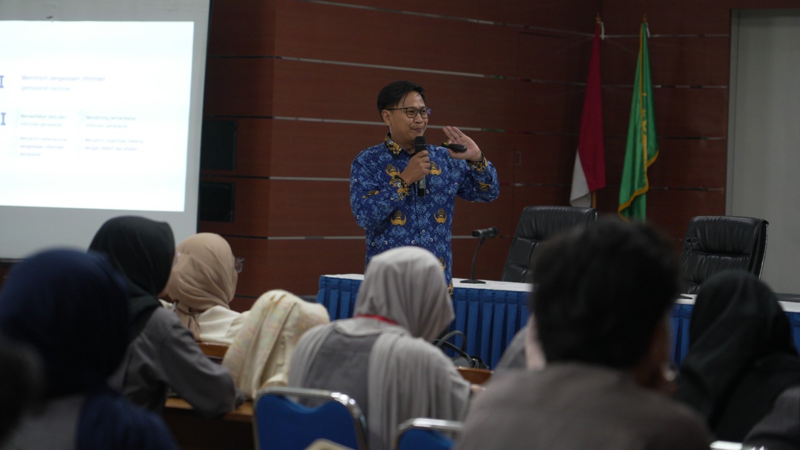 Materi berikutnya disampaikan oleh narasumber dari Direktorat Pemetaan Tematik yang menyoroti urgensi peta tematik. Mahasiswa diberi gambaran tentang bagaimana peta dasar diolah dan diintegrasikan dengan data spesifik untuk menghasilkan informasi geospasial tematik yang digunakan berbagai sektor, mulai dari pertanian, mitigasi bencana, hingga perencanaan wilayah. Diskusi berlangsung dinamis dengan banyak pertanyaan kr itis dari mahasiswa mengenai tantangan integrasi data lintas instansi.
