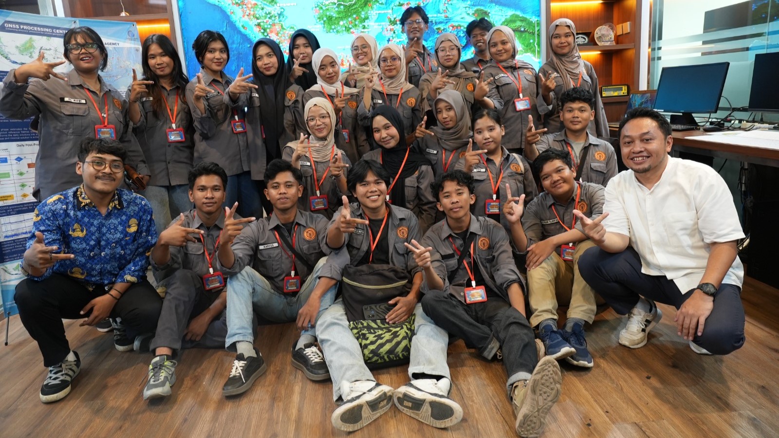 Mahasiswa mendapatkan penjelasan teknis mengenai cara kerja kedua stasiun yang beroperasi 24 jam untuk menyediakan data posisi dari Global Navigation Satellite System (GNSS) serta data ketinggian permukaan laut secara akurat, dua komponen penting dalam berbagai kegiatan survei dan pemetaan nasional.
