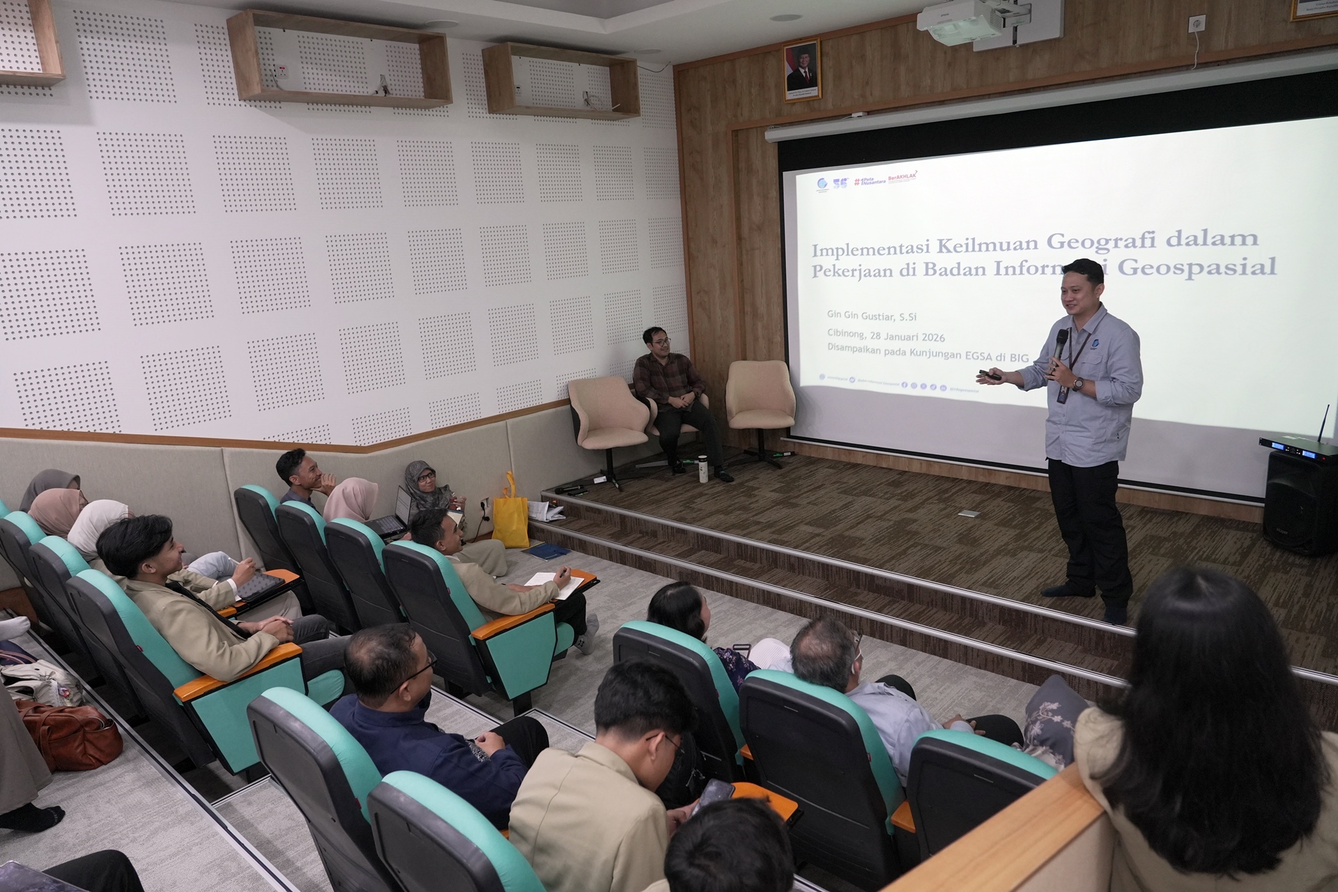 Cibinong, Berita Geospasial – Badan Informasi Geospasial (BIG) menerima kunjungan mahasiswa Environmental Geography Student Association (EGSA) Universitas Gadjah Mada (UGM) pada Rabu, 28 Januari 2026. Kunjungan ini bertujuan memberikan gambaran nyata mengenai peran strategis data geospasial dalam pembangunan nasional sekaligus membuka wawasan mahasiswa tentang peluang karier di bidang geografi.