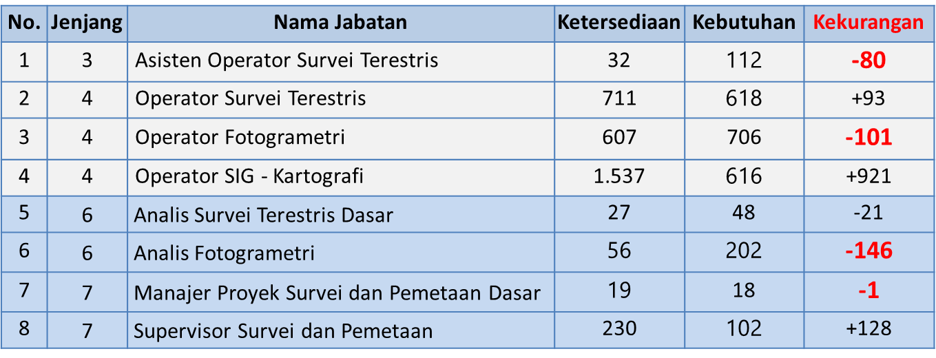 Apakah BIG sudah melakukan kajian terkait SDM bidang IG? Jawabannya pernah. Bahkan sudah dua kali dilakukan, yaitu pada 2015 dan dipertajam pada 2018 sebagaimana terlampir di tabel 1 Analisis pemenuhan SDM IG Nasional.