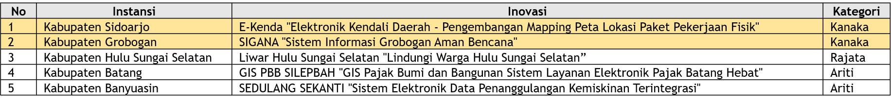 • Kategori Pemerintah Kabupaten