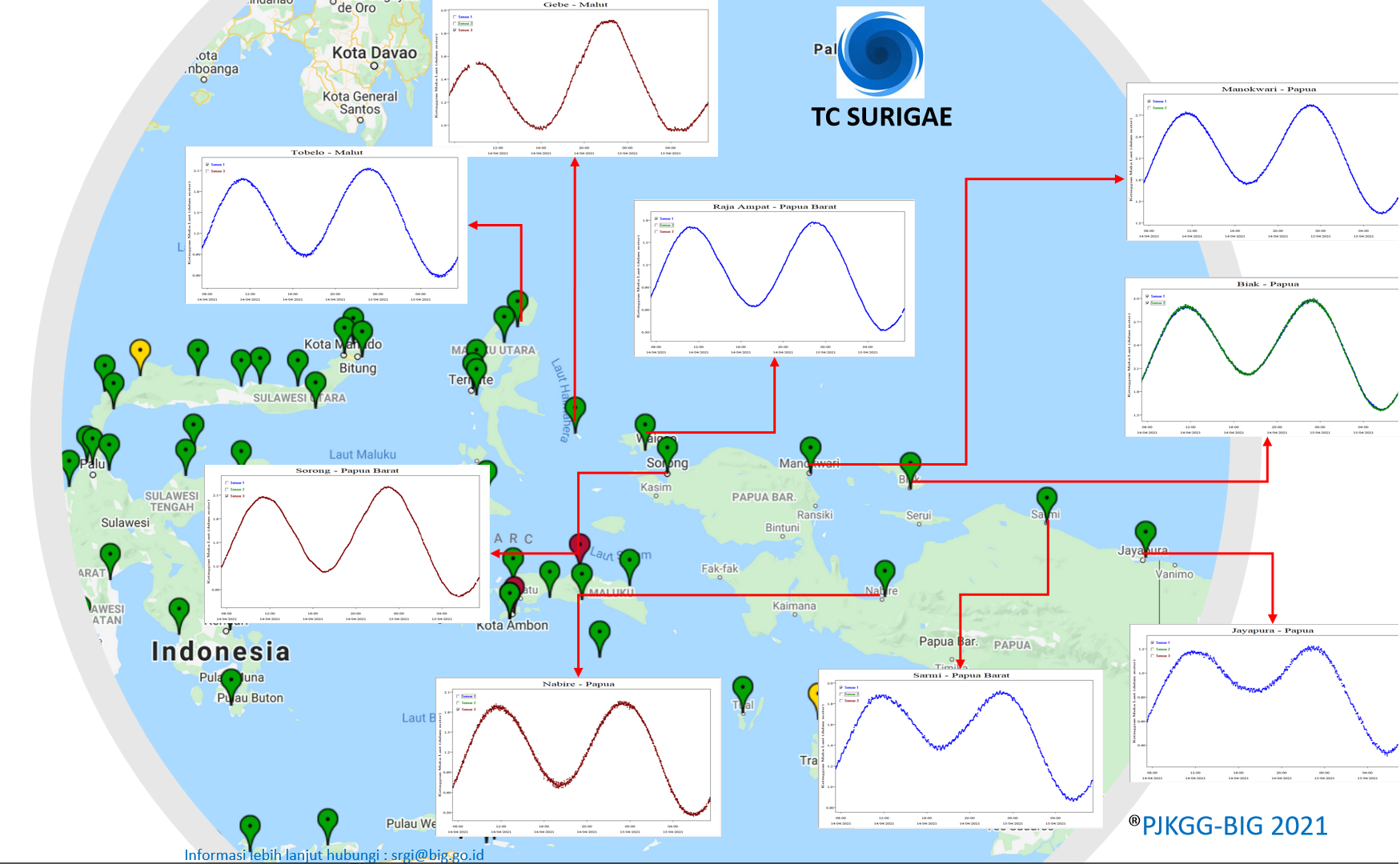 Bayu menjelaskan, stasiun pasut BIG merekam fenomena naik turunnya permukaan air laut secara periodik. Data dari pasut dapat digunakan sebagai perangkat untuk memantau dampak dari Siklon Tropis Surigae terhadap kenaikan muka air laut di sekitar wilayah terjadinya siklon tersebut.