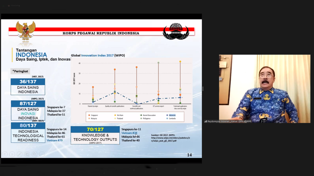 Ketua I Dewan Pengurus KORPRI Nasional Reydonnyzar Moenek sebagai narasumber dalam seminar ini menyampaikan bahwa jiwa korsa PNS berkaitan erat dengan pelaksanaan reformasi birokrasi dan peningkatan kapasitas SDM di Indonesia.