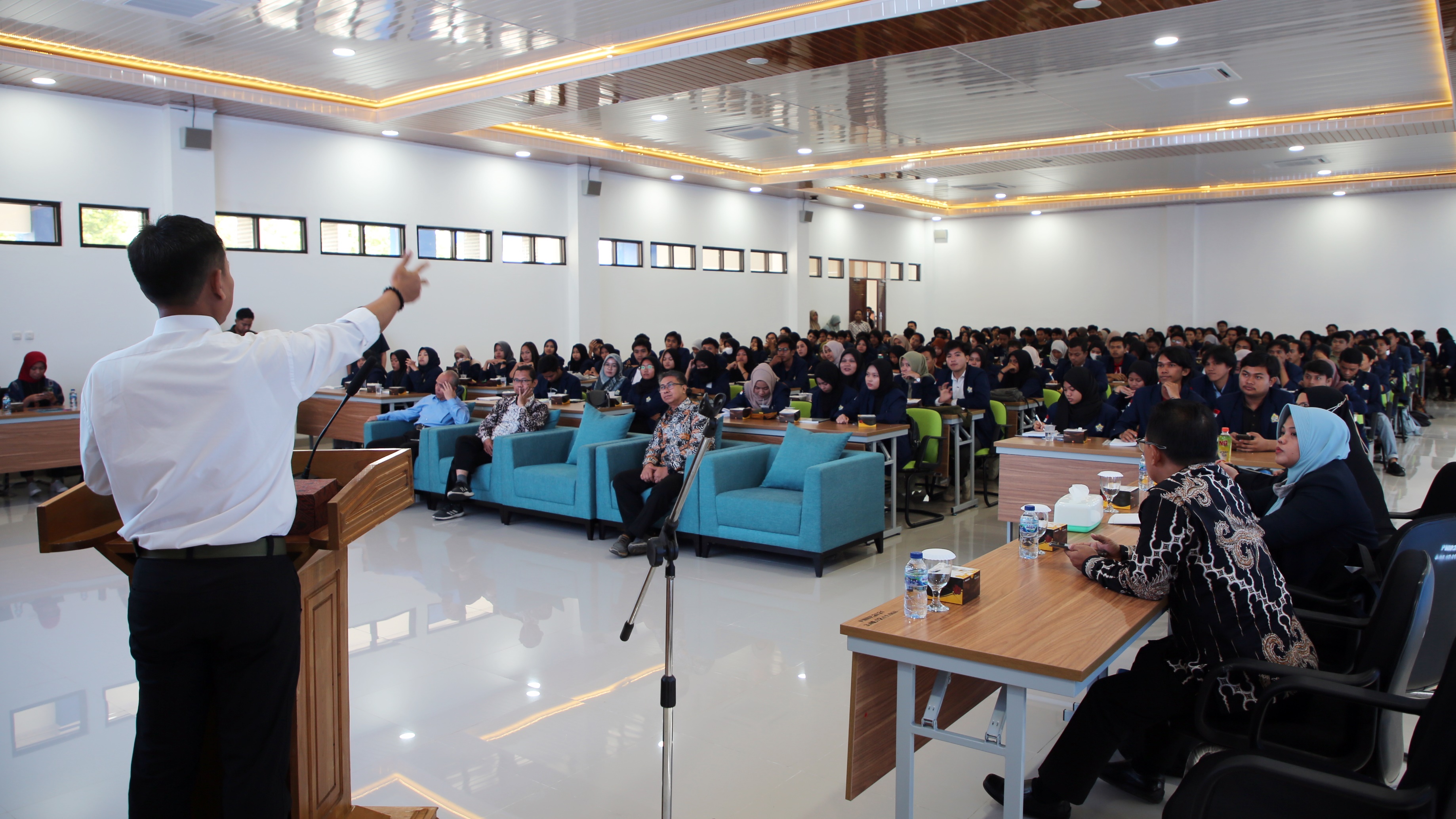 Adapun kegiatan kuliah tamu ini diikuti oleh kurang lebih 200 mahasiswa dan dosen UNIB yang diantaranya berasal dari Fakultas Kehutanan, Fakultas Kelautan, dan Fakultas Informatika. Mahasiswa menyimak materi yang disampaikan dengan antusias dan mengajukan berbagai pertanyaan yang dijawab secara komprehensif oleh Aris. Kuliah tamu ini merupakan rangkaian dari kegiatan penandatanganan kerja sama antara BIG dengan UNIB yang telah dilaksanakan pada sesi pagi sebelumnya di Ruang Rektorat UNIB. (MN/LR)