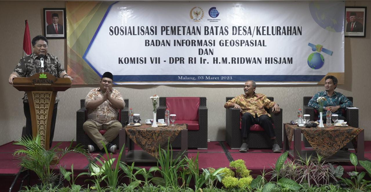 Senada, anggota Komisi VII DPR Ridwan Hisjam yang turut hadir mengungkapkan bahwa penegasan batas desa merupakan agenda pusat yang tertuang dalam Peraturan Presiden Nomor 23 Tahun 2021 tentang Perubahan atas Perpres Nomor 9 Tahun 2016 tentang Percepatan Pelaksanaan Kebijakan Satu Peta pada Tingkat Ketelitian Peta Skala 1:50.000. Pihaknya berkomitmen mendukung BIG dalam penyelesaian batas wilayah.