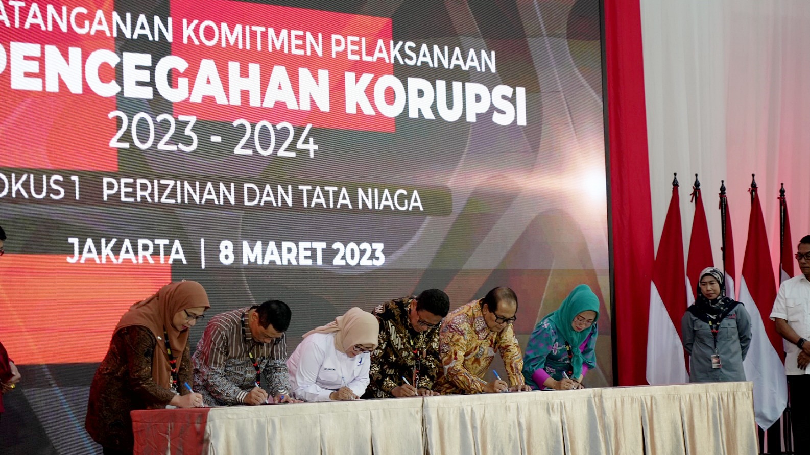 Penandatanganan komitmen untuk Fokus 1 Perizinan dan Tata Niaga dihadiri 22 K/L. Turut hadir dalam acara tersebut Ketua KPK RI, Menteri Koordinator Ekonomi, Menteri Hukum dan HAM, Menteri Investasi/Kepala BKPM, dan Eselon I perwakilan K/L pada Fokus 1 Perizinan dan Tata Niaga.