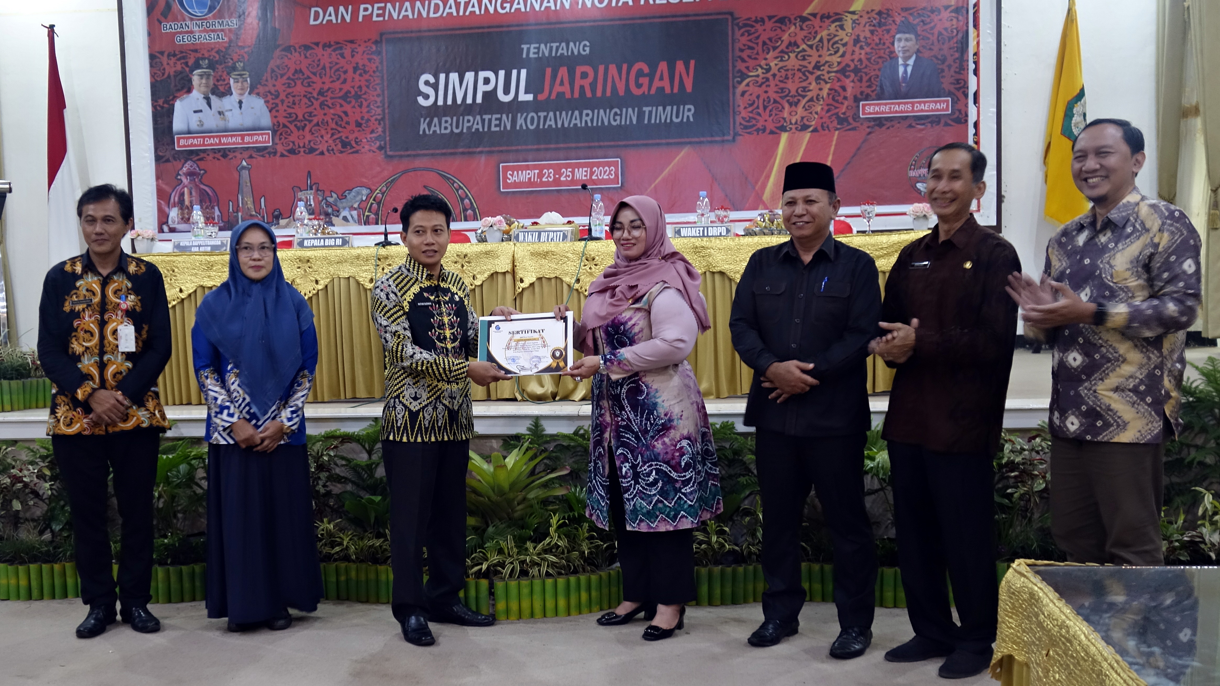 “Saya berharap dengan telah dibentuknya simpul jaringan ini, bisa mendukung pengambilan kebijakan selanjutnya yang berbasis data sektoral dan data spasial yang termuat dalam Geoportal Kabupaten Kotawaringin Timur,” ujar Wakil Bupati Kotawaringin Timur Irawati dalam sambutannya.