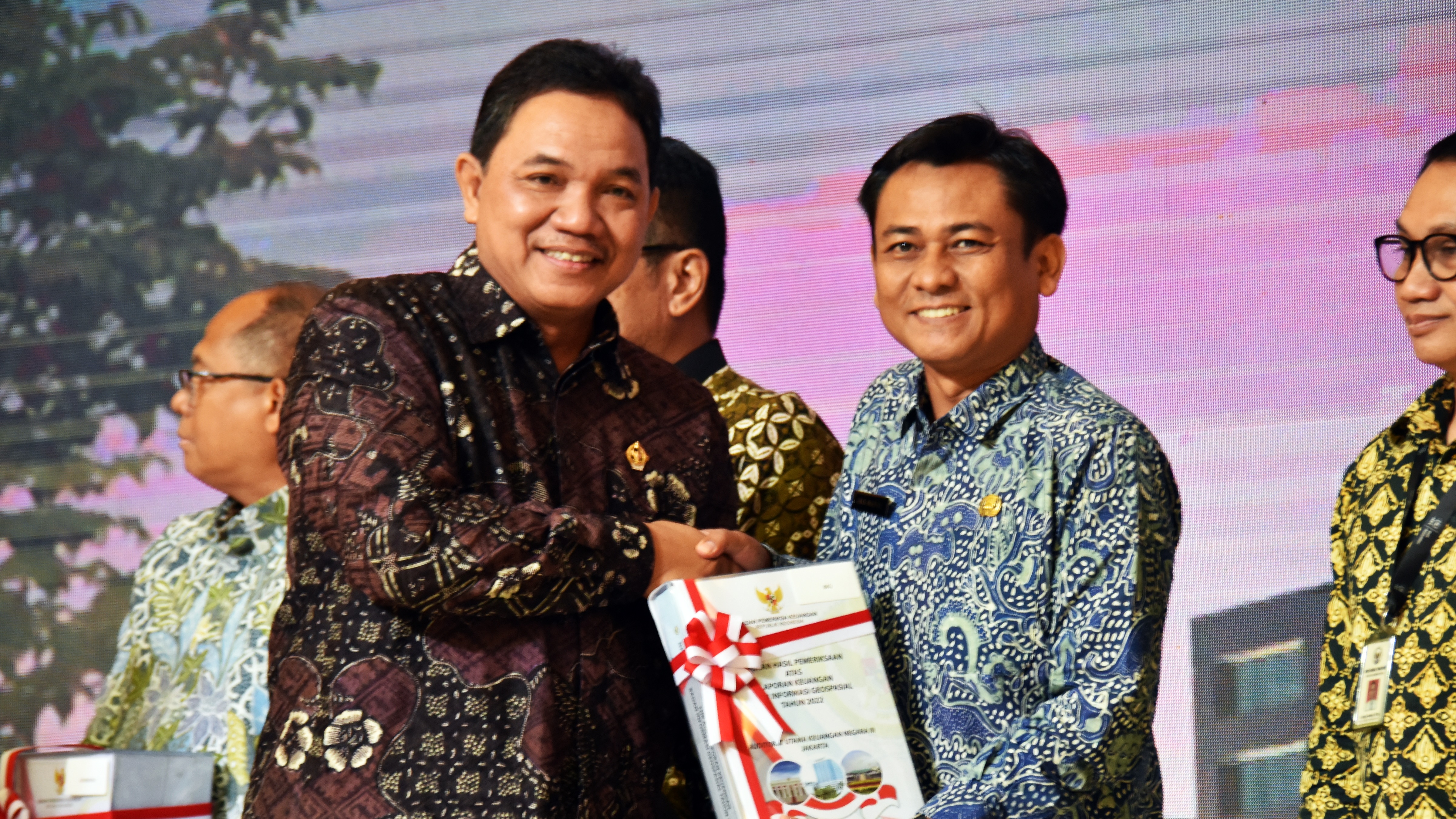 Jakarta, Berita Geospasial – Badan Informasi Geospasial (BIG) kembali mendapatkan opini Wajar Tanpa Pengecualian (WTP) atas Laporan Hasil Pemeriksaan (LHP) Laporan Keuangan (LK) Tahun 2022 dari Badan Pemeriksa Keuangan (BPK). Pada Senin, 10 Juli 2023, bertempat di Auditorium BPK, Kepala BIG Muh Aris Marfai menerima LHP tersebut dengan disaksikan oleh pimpinan 34 Kementerian dan Lembaga (K/L) lainnya.