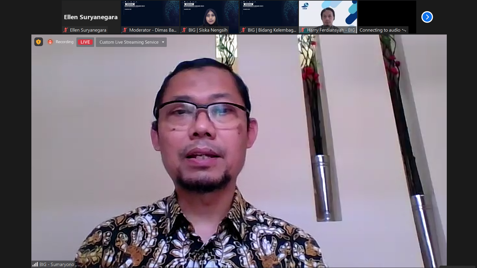 Cibinong, Berita Geospasial – Badan Informasi Geospasial (BIG) akan kembali menyelenggarakan Bhumandala Award 2023. Gelaran ini diberikan sebagai bentuk penghargaan terhadap upaya membangun Simpul Jaringan (SJ) Informasi Geospasial (IG) kepada Kementerian/Lembaga (K/L) dan Pemerintah Daerah (Pemda), yang dinilai terbaik dalam mempersiapkan diri dan membangun SJ. Pada Webinar Bhumandala Award 2023 yang dilaksanakan secara online pada Rabu, 16 Agustus 2023, Sumaryono selaku Kepala Pusat Sandardisasi dan Kelembagaan IG (PSKIG) BIG menyampaikan bahwa Bhumandala Award semakin relevan dan penting untuk memberikan dorongan dan semangat kepada para pemangku simpul jaringan di setiap K/L dan Pemda.