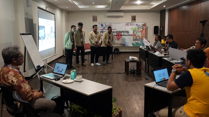 Yogyakarta, Berita Geospasial – Babak Final Kompetisi Pemanfaatan dan Uji Aplikasi PetaKita 2023 yang berlangsung di Hotel Kayla, Yogyakarta (14/09) telah selesai dilaksanakan. Terdapat 5 tim yang lolos ke babak final dari masing-masing kategori yaitu kategori mahasiswa dan kategori SMA/SMK. Pada babak ini setiap tim akan mempresentasikan hasil dan dari pemanfaatan dan uji aplikasi PetaKita yang telah mereka lakukan sebelumnya.