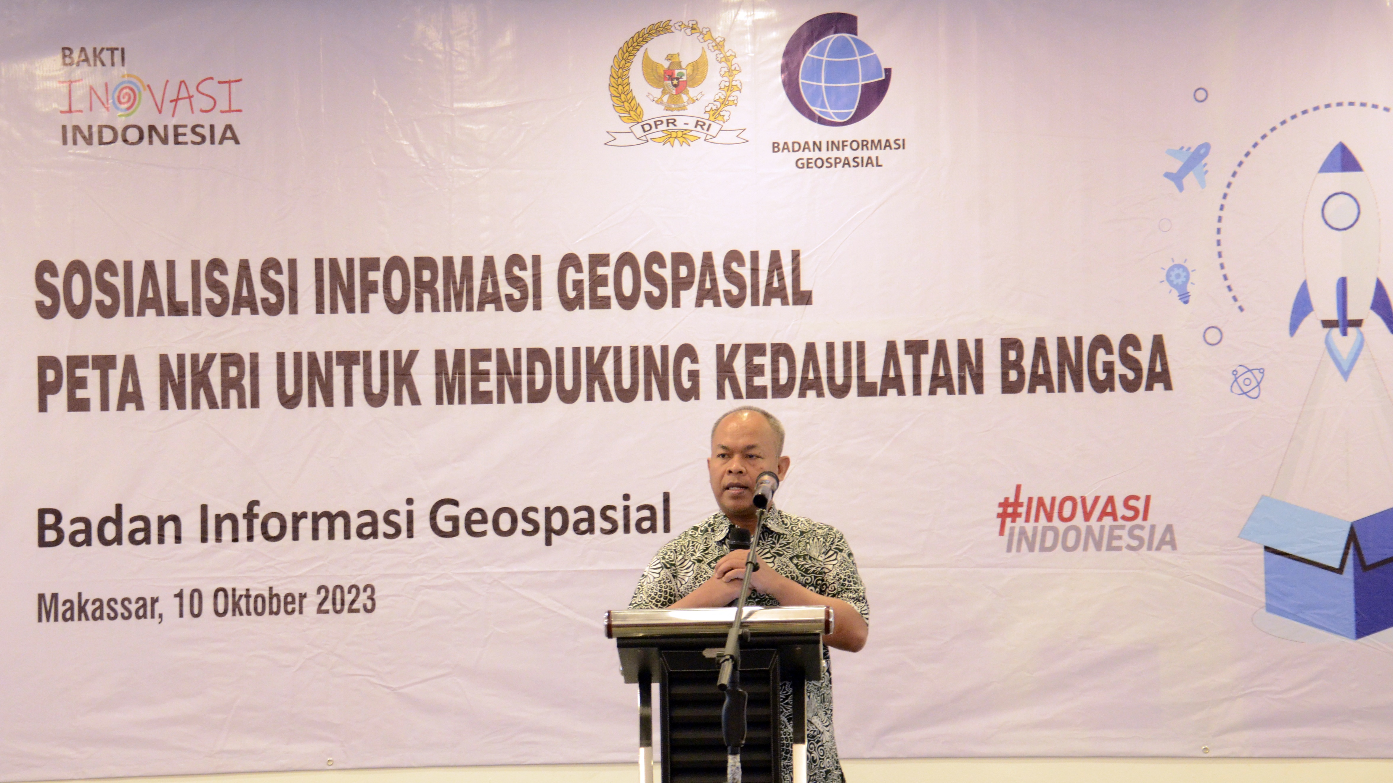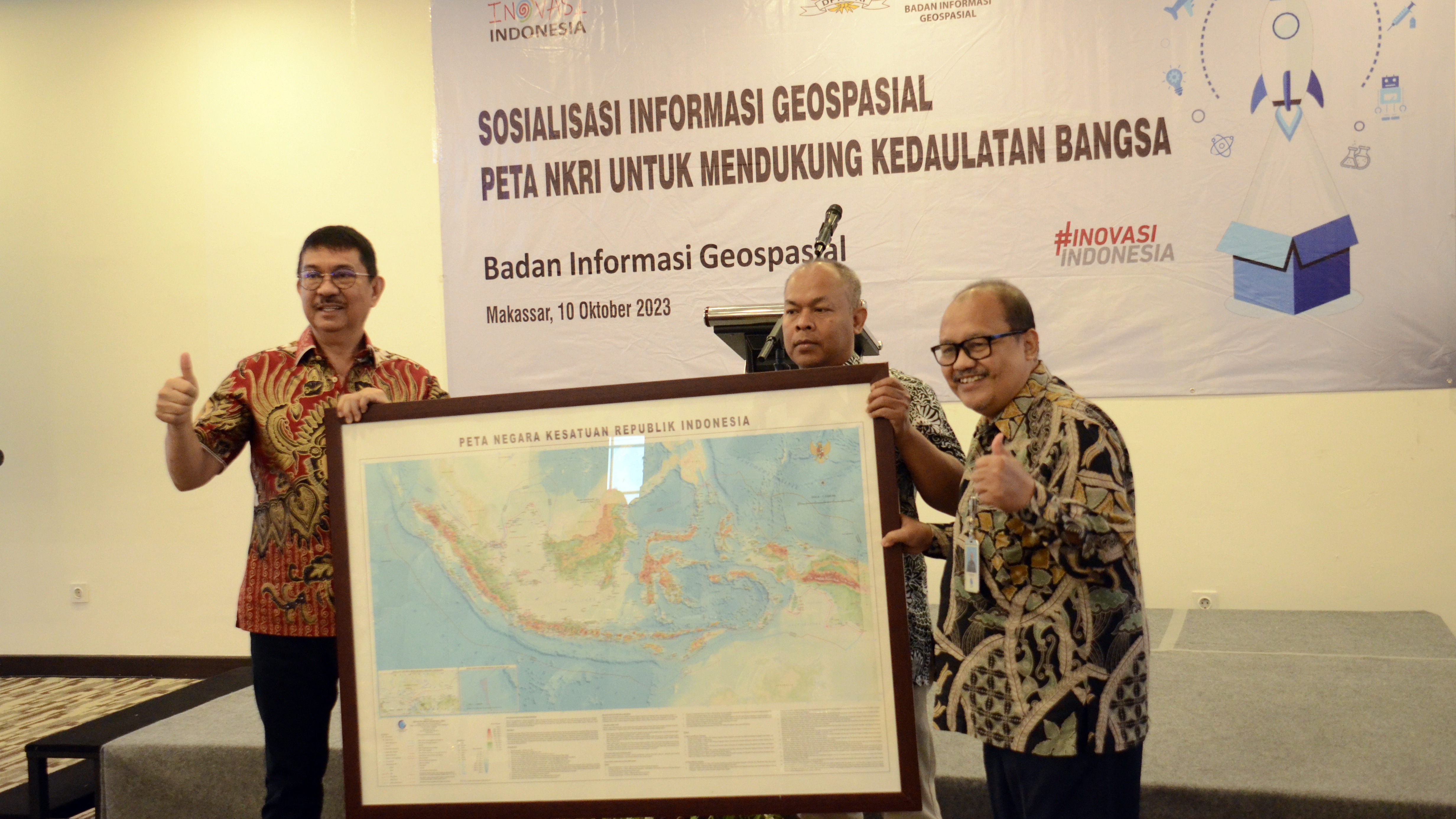 Makassar, Berita Geospasial – Badan Informasi Geospasial (BIG) menggelar Sosialisasi Informasi Geospasial dengan tema `Peta NKRI untuk Mendukung Kedaulatan Bangsa` di Makassar, Sulawesi Selatan, pada Selasa, 10 Oktober 2023. Kegiatan ini bertujuan lebih mengenalkan Peta Negara Kesatuan Republik Indonesia (NKRI), sekaligus menumbuhkan kembali rasa nasionalisme.
