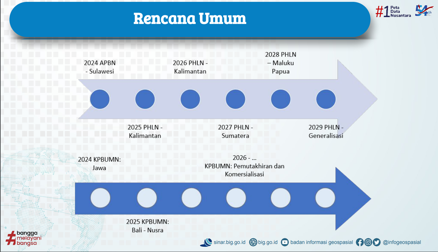 Sebagai informasi, BIG telah mengalokasikan Rp 1 triliun pada periode 2014-2021 untuk pemetaan skala besar 1:5.000. Namun, BIG hanya mampu merampungkan 2,5 persen wilayah daratan Indonesia.
