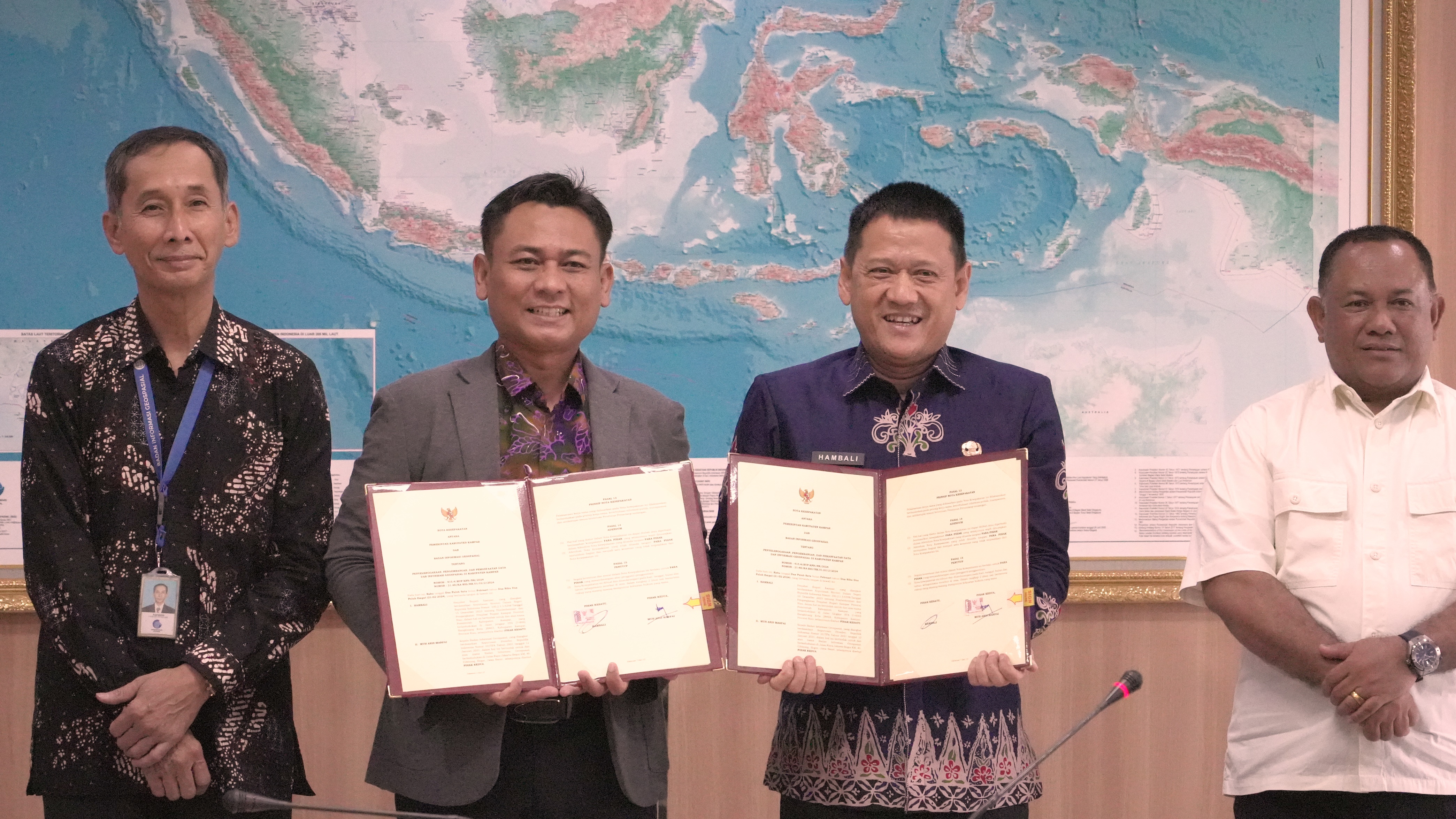 Cibinong, Berita Geospasial – Badan Informasi Geospasial (BIG) dan Pemerintah Kabupaten (Pemkab) Kampar, Riau, melakukan penandatanganan Nota Kesepakatan dan Rencana Kerja di Kantor BIG, Cibinong pada 21 Februari 2024. Dokumen kerja sama tentang Penyelenggaraan, Pengembangan, serta Pemanfaatan Data dan Informasi Geospasial (IG) di Kabupaten Kampar ini ditandatangani oleh Kepala BIG Muh Aris Marfai dan Penjabat (Pj) Bupati Kampar Hambali. Dengan adanya kerja sama ini diharapkan dapat mempercepat penyelenggaraan IG yang akurat terutama untuk pengelolaan sumber daya alam yang berkelanjutan di Kabupaten Kampar.