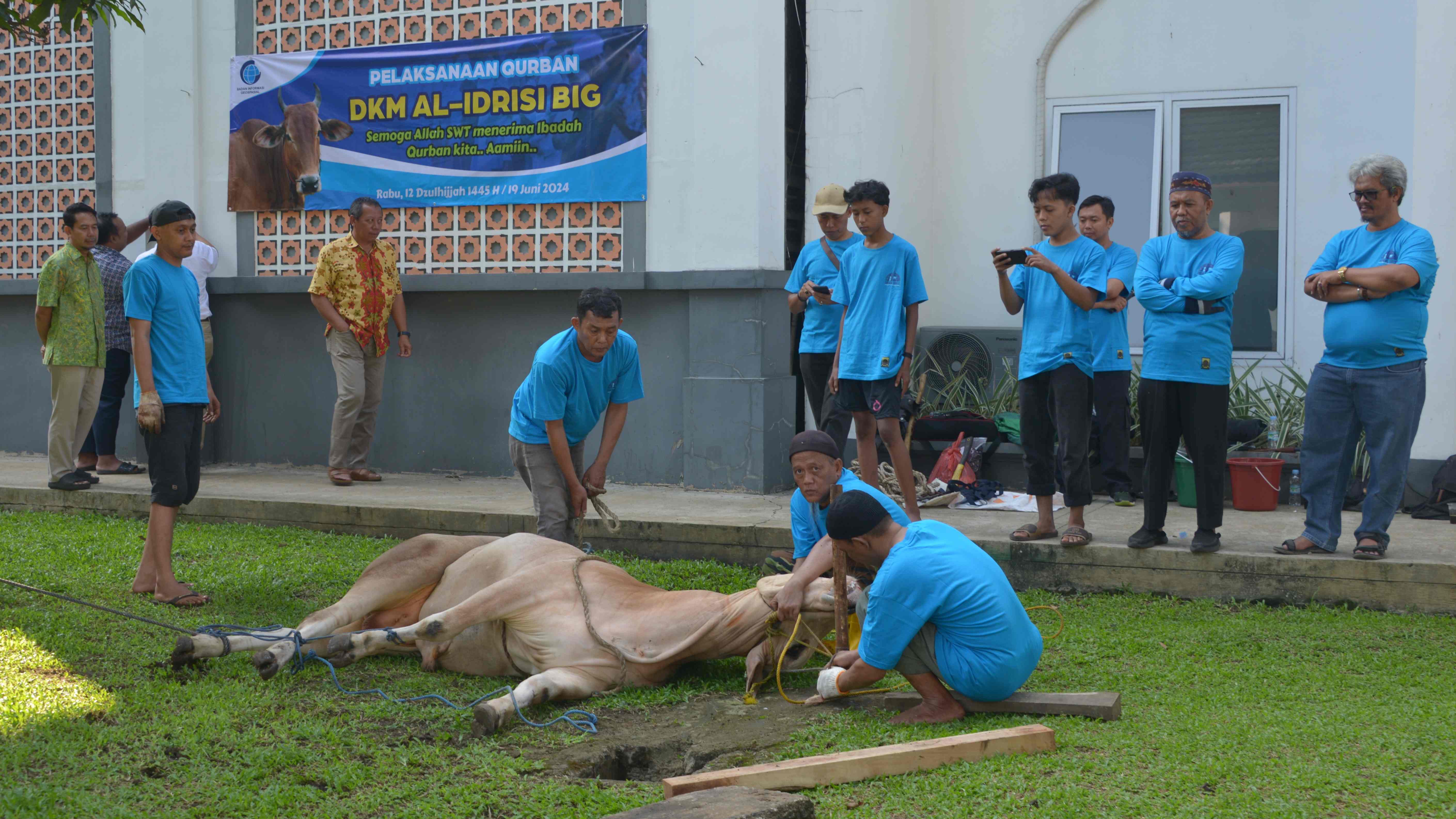 Total jumlah hewan kurban yang disembelih adalah tiga ekor sapi dan dua ekor kambing. Prosesi penyembelihan dilakukan oleh Ketua DKM Al-Idrisi BIG Enjang Farid, dan Kepala Pusat Pemetaan Rupabumi dan Toponim (PPRT) BIG Ade Komara Mulyana. Kegiatan ini rutin diadakan DKM Al-Idrisi BIG tiap tahunnya sebagian sarana berbagi dengan sesama.