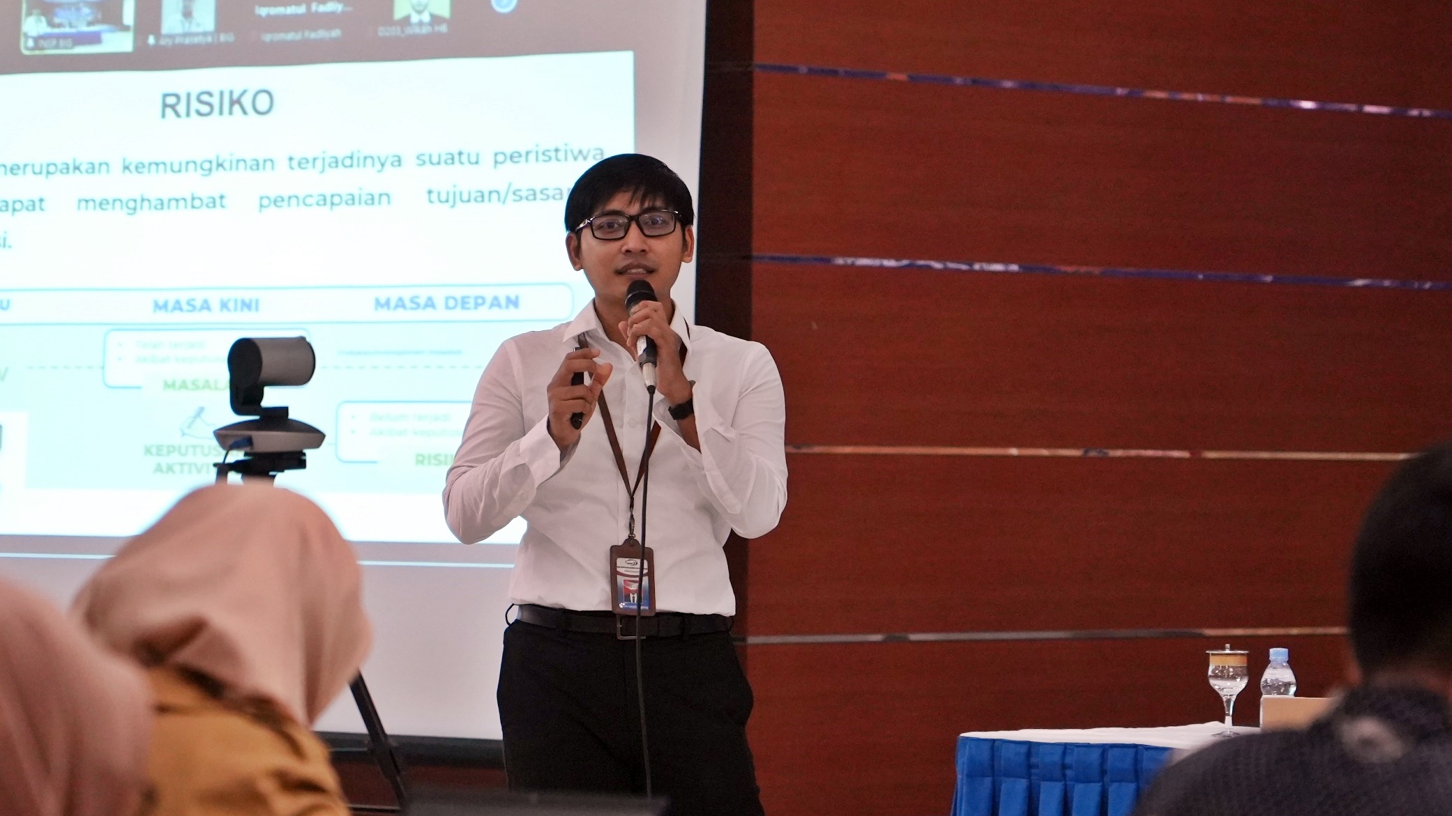 Auditor Ahli Madya BIG Ary Prasetya dalam sambutannya menjelaskan pentingnya manajemen risiko bagi organisasi pemerintah. Manajemen risiko meliputi identifikasi, analisis, evaluasi, serta pengendalian risiko untuk meminimalkan potensi hambatan.