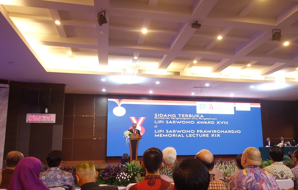 Kepala Lembaga Ilmu Pengetahuan Indonesia (LIPI), Laksana Tri Handoko membuka sidang terbuka dan dibuka untuk umum pimpinan LIPI Penganugerahan Penghargaaan Ilmu Pengetahuan LIPI SARWONO AWARD XVIII dan SARWONO PRAWIROHARDJO MEMORIAL LECTURE XIX 2019 pada kamis, 22 Agustus 2019 di Auditorium Lipi, Jakarta yang dihadiri oleh perwakilan Anggota Komisi VII DPR, Perwakilan Lembaga Negara, perwakilan kedutaan besar, Akademisi, pimpinan di lingkungan LIPI dan para Peneliti.
