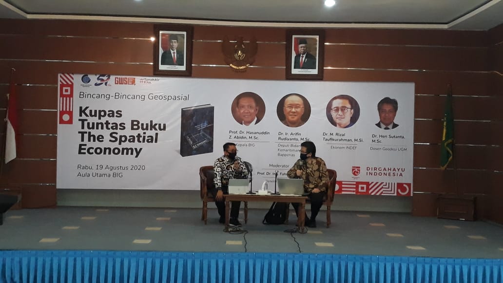 Hal tersebut merupakan poin utama pada kegiatan webinar Bincang-Bincang Geospasial: Kupas Tuntas Buku The Spatial Economy yang berlangsung pada Rabu, 19 Agustus 2020 di Aula Utama Badan Informasi Geospasial. Selama lebih kurang 2 jam, narasumber yang hadir baik offline maupun online berdiskusi berdasarkan latar belakangnya masing-masing.