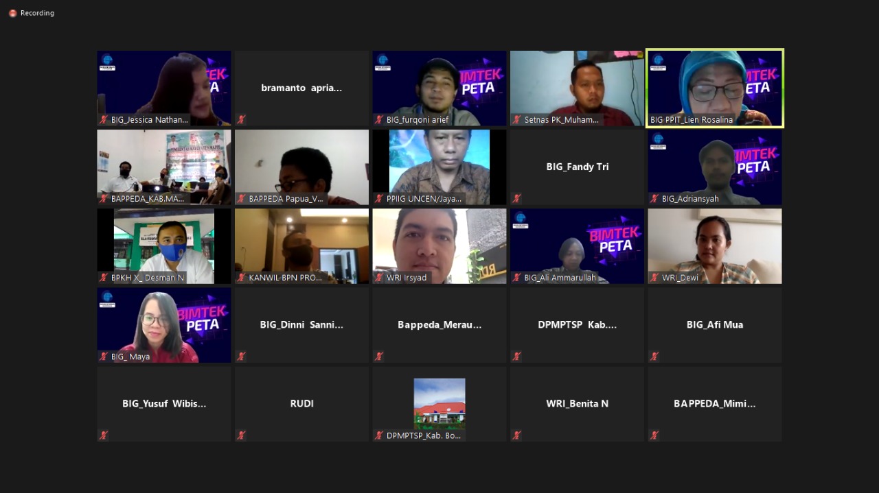 Bimtek dilaksanakan secara daring, karena pandemi Covid-19 yang terjadi di seluruh Indonesia. Bimtek sebagai upaya meningkatkan sumber daya manusia (SDM) di bidang Informasi Geospasial (IG) agar dapat menyediakan database (spasial) perkebunan sawit dan penataan perizinan perkebunan yang akurat dan dapat dipertanggung jawabkan melalui tata kerja KSP.