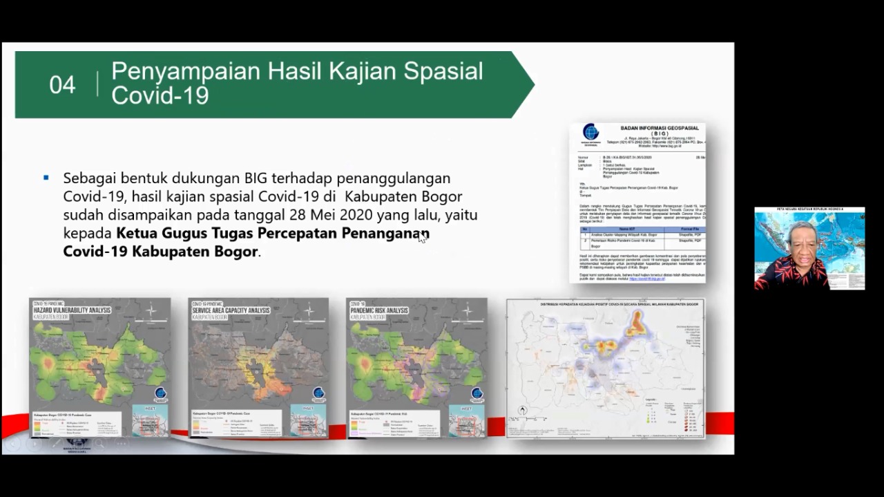 Ganda mengungkapkan berbagai peranan “dibelakang layar” Informasi Geospasial (IG) dalam menangani pandemi yang masuk ke Indonesia sejak Maret 2020 silam.