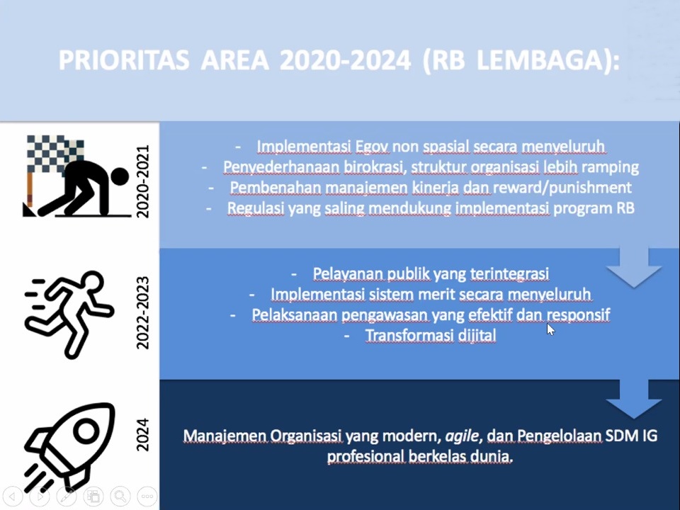 “Prioritas Reformasi Birokrasi BIG adalah manajemen organisasi yang modern, agile, dan pengelolaan SDM IG professional berkelas dunia pada 2024,” ungkap Ganda.