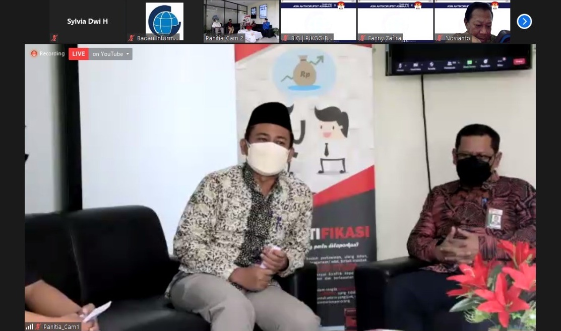 Cibinong, Berita Geospasial – Badan Informasi Geospasial (BIG) bekerja sama dengan Komisi Pemberantasan Korupsi (KPK) menyelenggarakan gelar wicara antikorupsi bertema `Budaya Antikorupsi dalam Membangun Zona Integritas Menuju Wilayah Bebas Korupsi/Wilayah Birokrasi Bersih Melayani`. Acara yang dilaksanakan pada Jumat, 30 April 2021 ini dalam rangka membangun Zona Integritas menuju Wilayah Bebas Korupsi/Wilayah Birokrasi Bersih Melayani (WBK/WBBM).