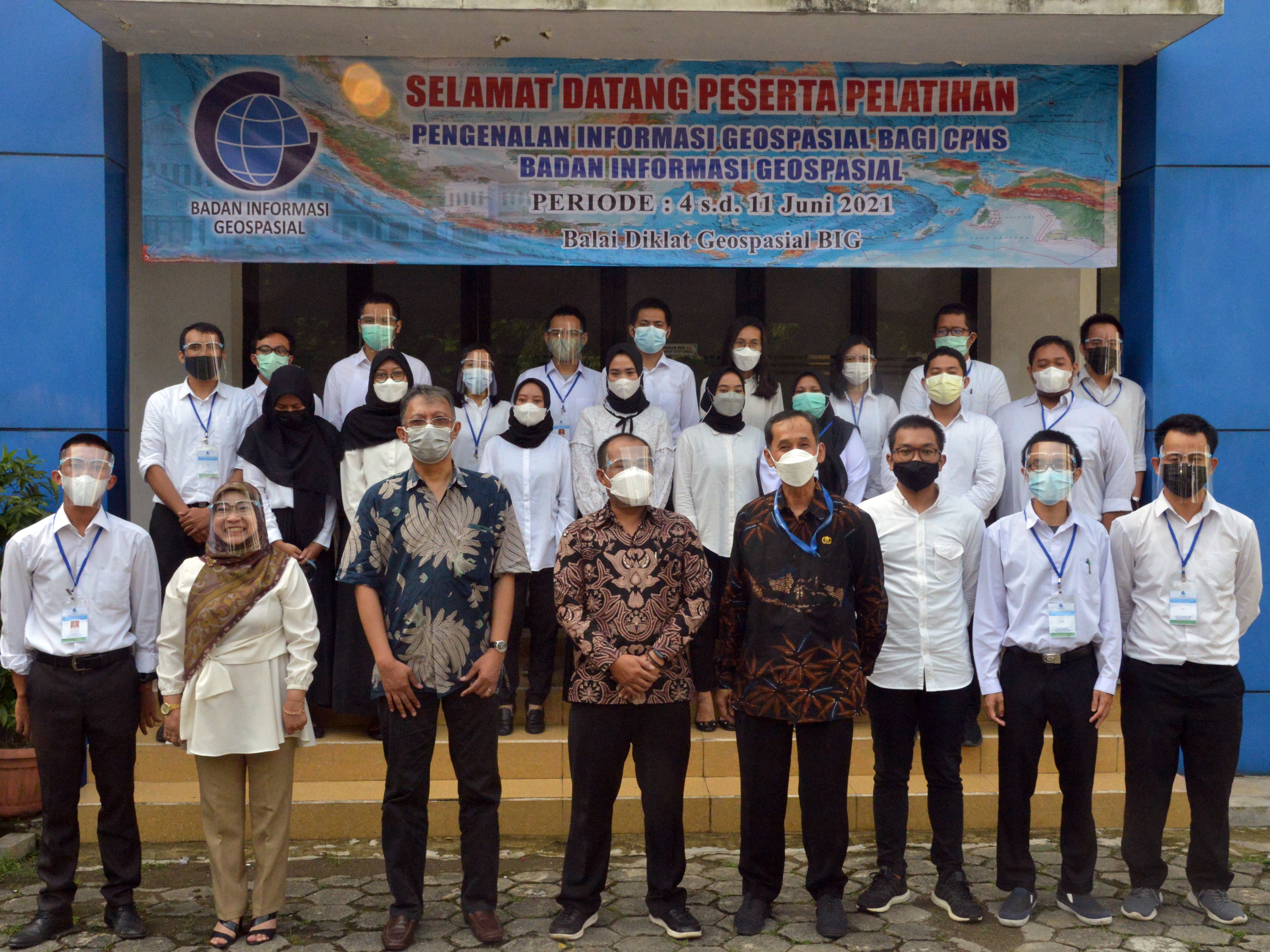 Cibinong, Berita Geospasial - Sebagai bagian dari rangkaian orientasi dan pelatihan dasar calon pegawai negeri sipil (CPNS), 39 CPNS BIG mengikuti Pelatihan Pengenalan Informasi Geospasial yang dilaksanakan di Balai Pendidikan dan Latihan BIG, Jumat, 4 Juni 2021. Kepala Balai Diklat Budi Parjanto menuturkan, Diklat tersebut bertujuan untuk mengembangkan kompetensi para CPNS.