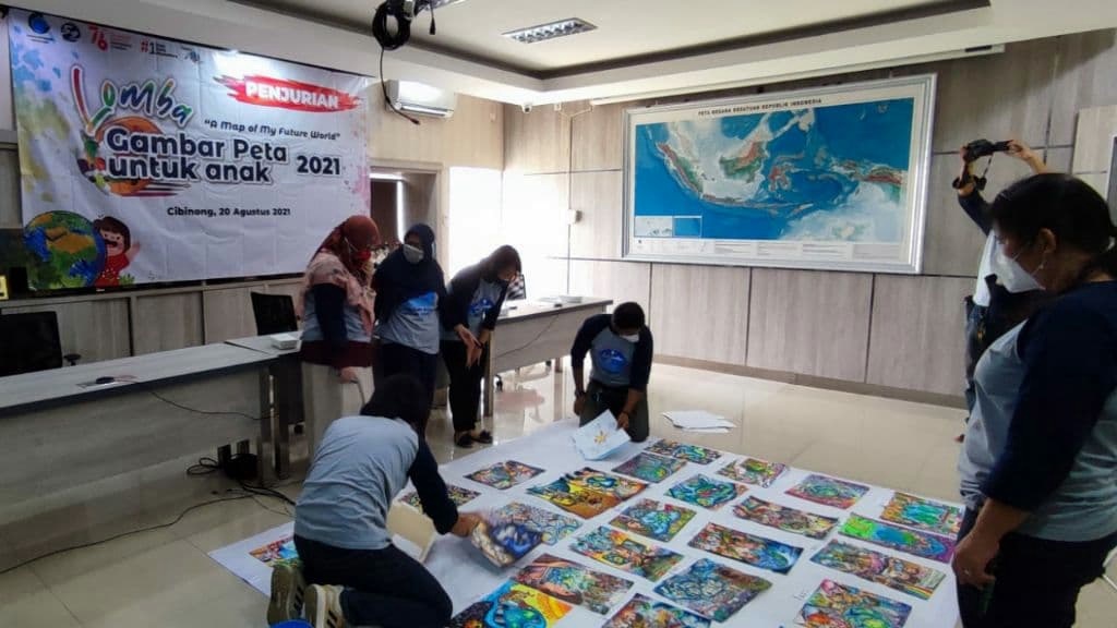Cibinong, Berita Geospasial - Badan Informasi Geospasial (BIG) menyelenggarakan penjurian tahap pertama untuk Lomba Gambar Peta untuk Anak 2021 dengan tema A Map of My Future World pada pada Jumat, 20 Agustus 2021 di Gedung Pusat Penelitian Promosi dan Kerja Sama BIG. Penjurian dilakukan oleh empat juri internal dari BIG.