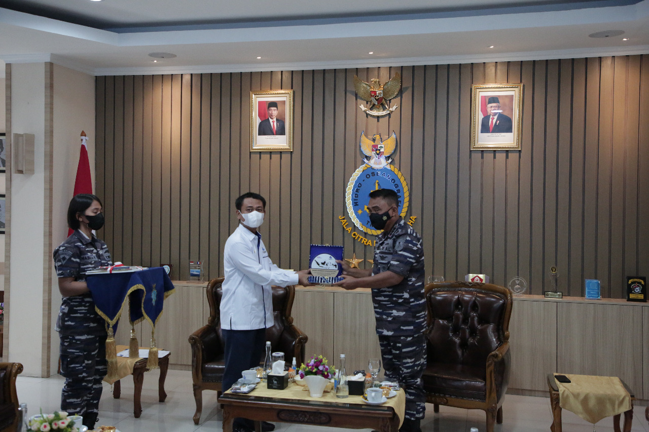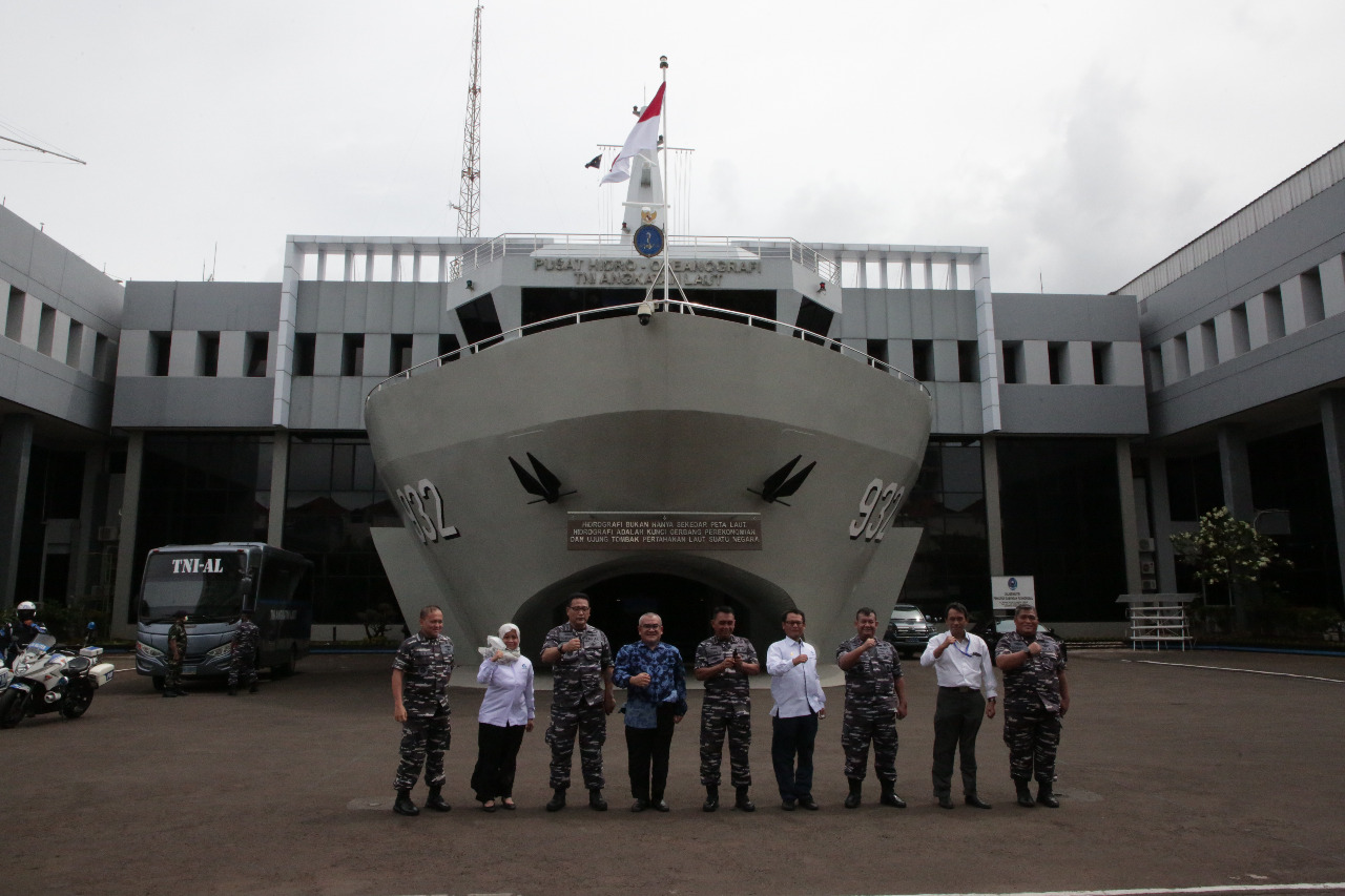 Jakarta, Berita Geospasial - Kepala Badan Informasi Geospasial (BIG) Muh Aris Marfai didampingi Deputi Bidang Informasi Geospasial Dasar Mohamad Arief Syafi'i, Kepala Pusat Pemetaan Kelautan dan Lingkungan Pantai Yosef Dwi Sigit Purnomo, dan Kepala Pusat Pemetaan Batas Wilayah Astrit Rimayanti mengadakan kunjungan kerja ke Pusat Hidro Oseanografi (Pushidros) TNI AL di Jakarta, Senin, 10 Januari 2022.
