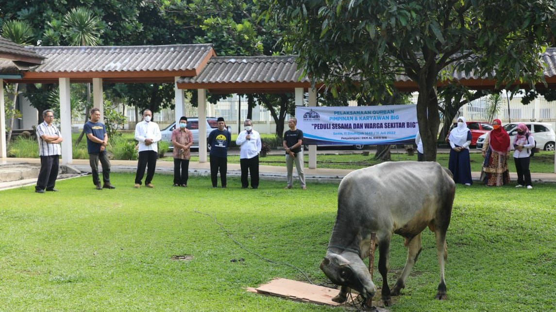 "Semoga kurban ini menjadi penguat tali persaudaraan di antara BIG dengan warga sekitar. Ini adalah salah satu bukti kepedulian BIG kepada internal dan warga di lingkungan BIG yang membutuhkan,” kata Ketua Panitia Kurban sekaligus Ketua DKM Al Idrisi BIG Enjang Farid dalam sambutannya sebelum pemotongan hewan kurban yang dilaksanakan di kantor BIG, Senin, 11 Juli 2022.