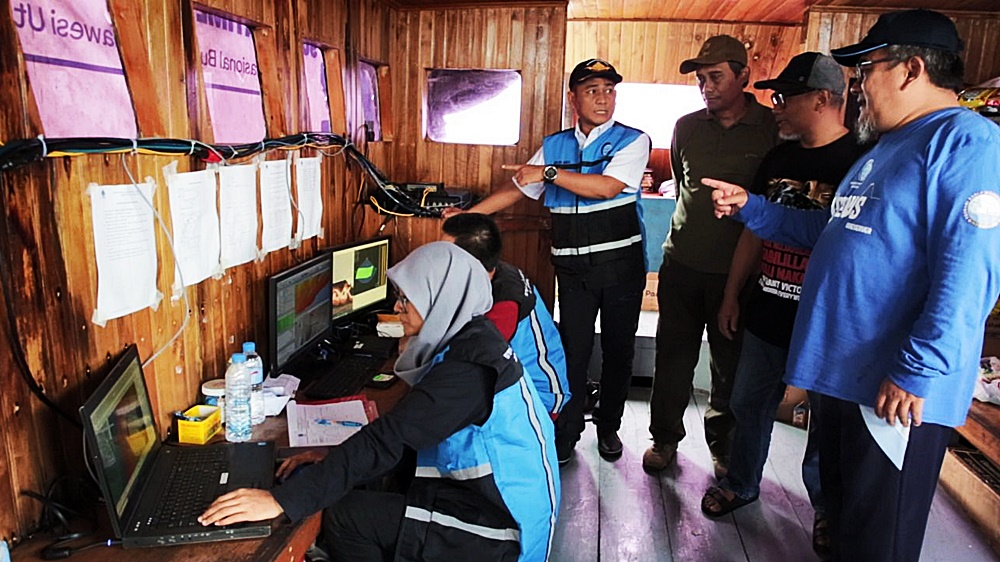 Manado, Berita Geospasial - Kepala Badan Informasi Geospasial (BIG) Muh Aris Marfai bersama Deputi Bidang Informasi Geospasial Dasar (IGD) Mohamad Arief Syafii melakukan inspeksi survei batimetri yang dilakukan Pusat Pemetaan Kelautan dan Lingkungan Pantai (PKLP) di Taman Nasional Bunaken, Sulawesi Utara. Inspeksi dilakukan untuk memastikan survei dilakukan sesuai standar dan akan selesai sesuai dengan target yang ditetapkan.