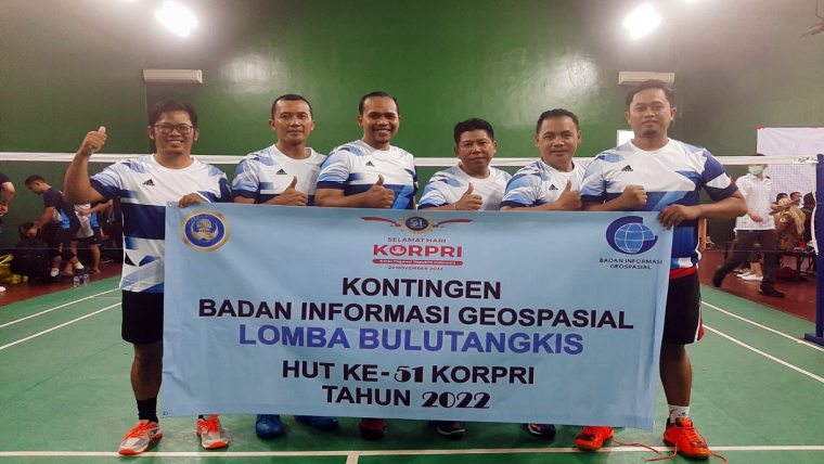 Jakarta, Berita Geospasial – Kontingen Bulu Tangkis Badan Informasi Geospasial (BIG) turut memeriahkan Turnamen Bulu Tangkis antar Kementerian dan Lembaga dalam rangka Hari Ulang Tahun KORPRI ke-51 Tahun 2022. Peringatan HUT ke-51 KORPRI tahun 2022 mengusung tema 'KORPRI Melayani, Berkontribusi, dan Berinovasi untuk Negeri'. Turnamen diselenggarakan oleh Kementerian Pemuda dan Olahraga Republik Indonesia (Kemenpora RI) d GOR Kemenpora Senayan Jakarta dari tanggal 15-17 November 2022.