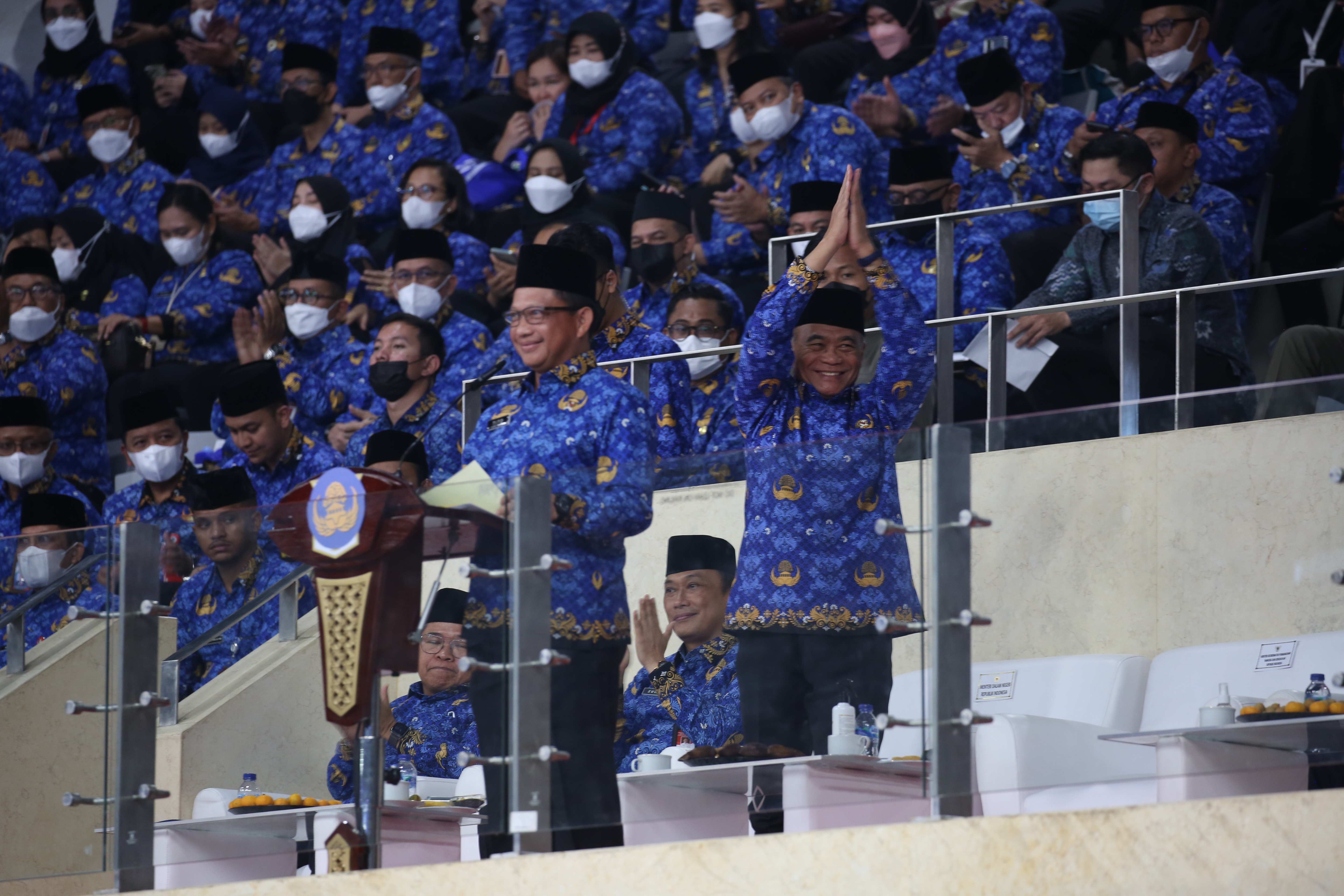 "Kegiatan KORPRI mari kita fokuskan dalam 4 kegiatan besar. Pertama untuk meningkatkan kualitas layanan publik dan digitalisasi birokrasi. Kedua, menguatkan ideologi dan karakter ASN. Ketiga, memberikan perlindungan karir dan bantuan hukum ASN, dan keempat meningkatkan kesejahteraan ASN," tandas Zudan.