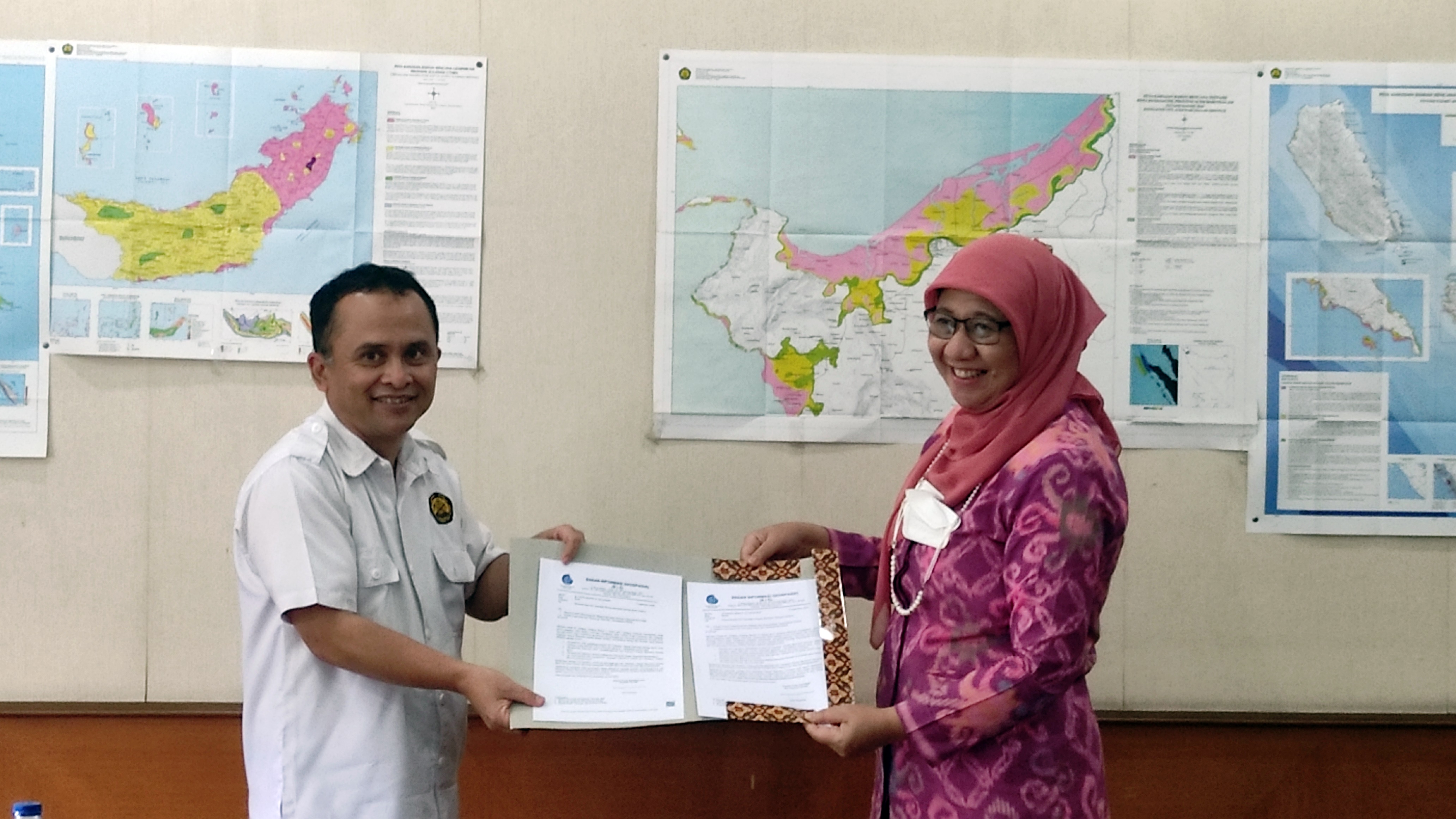 Bandung, Berita Geospasial - Badan Informasi Geospasial (BIG) menyerahkan `Rekomendasi Kebijakan terkait Penyelenggaraan Informasi Geospasial Tematik (IGT) Kawasan Rawan Bencana (KRB) Gempa Bumi dan KRB Tsunami` kepada Badan Geologi, Kementerian Energi dan Sumber Daya Mineral (ESDM).