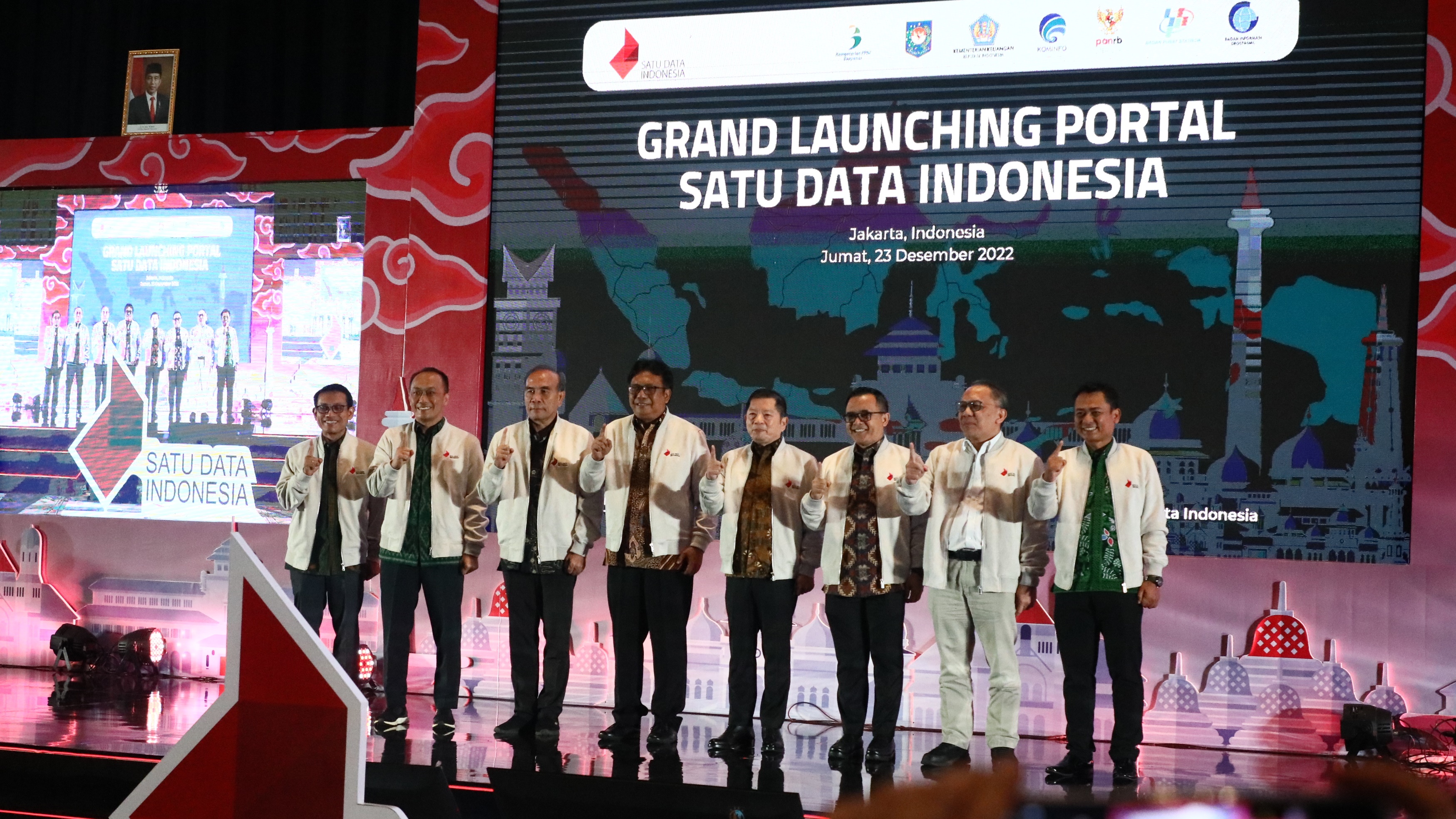 Kepala Badan Informasi Geospasial (BIG) Muh Aris Marfai ikut hadir meresmikan portal SDI bersama Menteri PPN/Bappenas Suharso Monoarfa, Menteri Pendayagunaan Aparatur Negara- Reformasi Birokrasi Azwar Anas, Kepala Badan Riset dan Inovasi Nasional (BRIN) Laksana Tri Handoko, Kepala Badan Pusat Statistik (BPS) Margo Yuwono, Kepala Badan Siber dan Sandi Negara (BSSN) Hinsa Siburian, Direktur Jenderal Kependudukan dan Catatan Sipil Zudan Arif Fakrulloh yang mewakili Menteri Dalam Negeri, dan Staf Ahli Kementerian Keuangan Sudarto.
