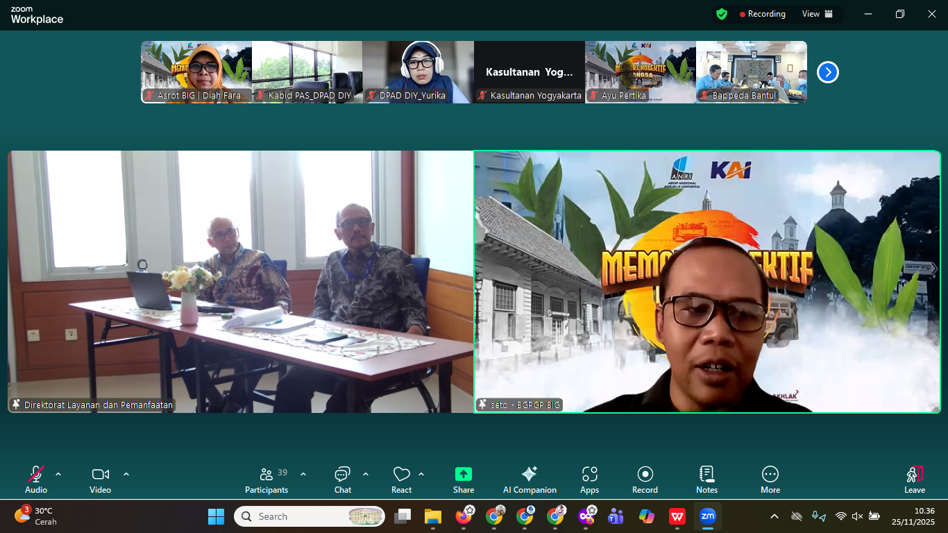 Jakarta, Berita Geospasial - Badan Informasi Geospasial (BIG) bersama lima institusi pengusul lainnya memaparkan usulan arsip bertajuk `Arsip Gumuk Pasir Parangtritis Yogyakarta Tahun 1921–2025` dalam sidang penilaian dewan pakar Memori Kolektif Bangsa (MKB) Tahap II Tahun 2025. Kegiatan yang dihadiri para pakar, tim penilai, serta nominator dari berbagai instansi ini berlangsung di Arsip Nasional Republik Indonesia (ANRI) pada Selasa, 25 November 2025.